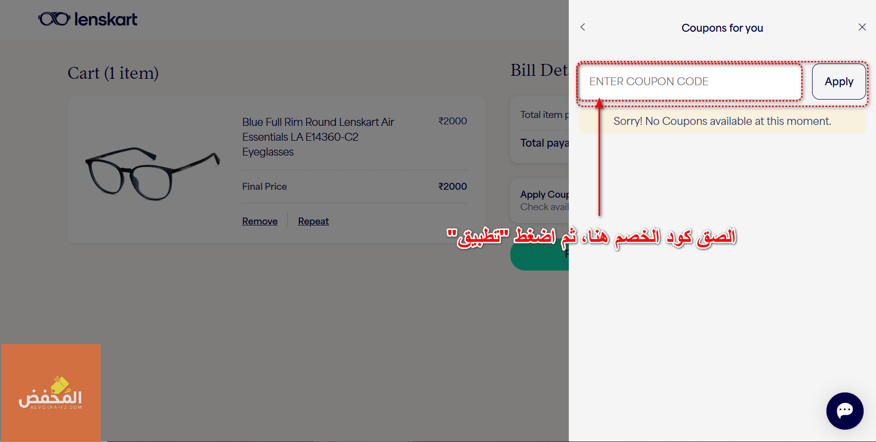انسخ والصق هذا الكود في لنس كارت | Lenskart