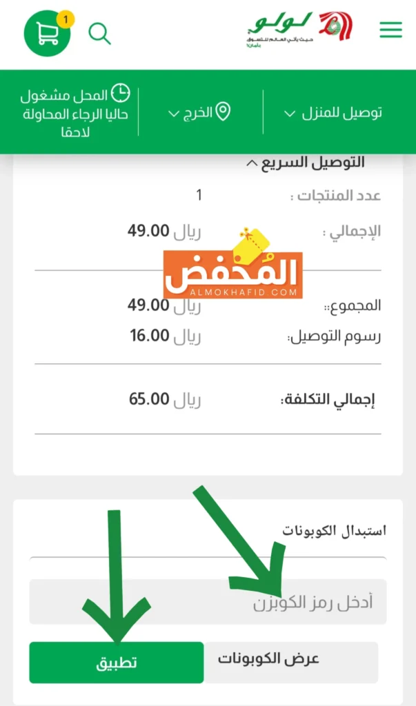 هذا بالإضافة إلى إمكانية استخدام الرمز الترويجي المتاح لكافة العملاء في كافة مدن المملكة السعودية، والذي يقدم تخفيضات لا مثيل لها على جميع المنتجات المتوفرة على موقعه الإلكتروني، فقط قبل تأكيد الدفع قم بتفعيل قسيمة شراء لولو هايبر ماركت واستفد بالتخفيض.